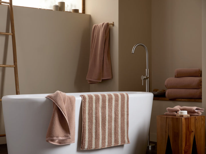 We love a seaside resort moment – with striped bath linens crafted from pure organic cotton.