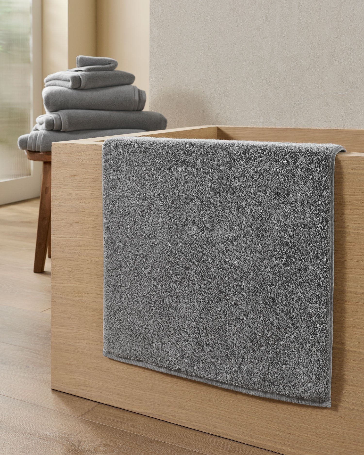 Our organic long-staple Turkish cotton is sourced from the Aegean region – known for its extra-long fibers – for superior strength and durability. Loomed using an innovative weaving technique that creates more surface area, allowing for maximum absorbency and unparalleled soft fluffiness. At 1,300 grams per square meter, this tub mat is our most plush and dense, for a luxurious post-shower experience.