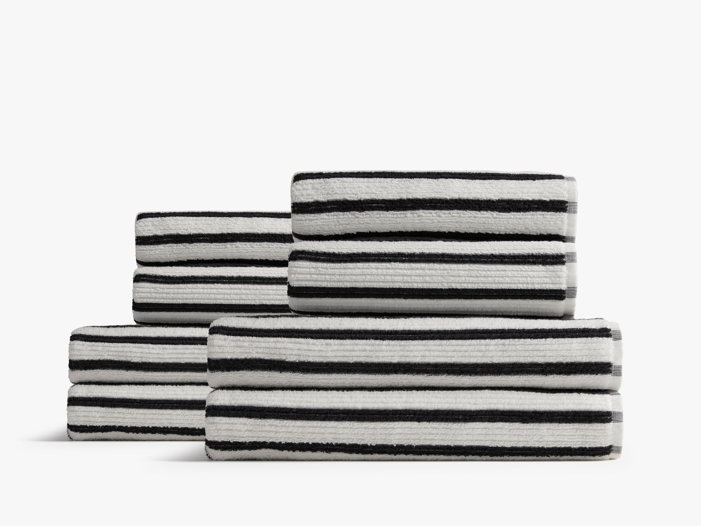 Replenish your towels with the 4 and 4, which bundles together four hand towels and four bath towels for savings and convenience. Evoking seaside resort beach towels, our Organic Resort Stripe Collection is like your own little slice of paradise. Crafted from pure organic cotton in a super soft ribbed texture to be sustainable, absorbent and quick-drying.