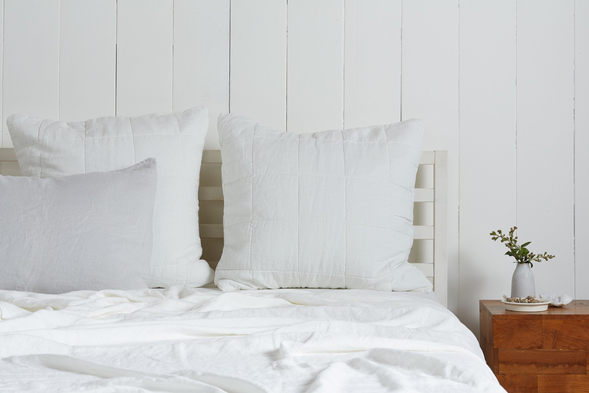 Our modern take on the classic quilt, this box pattern blanket has a medium weight that's ideal for layering.